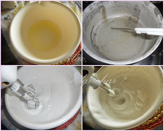 Virta lentamente sobre as gemas e bata bem com a batedeira eléctrica,